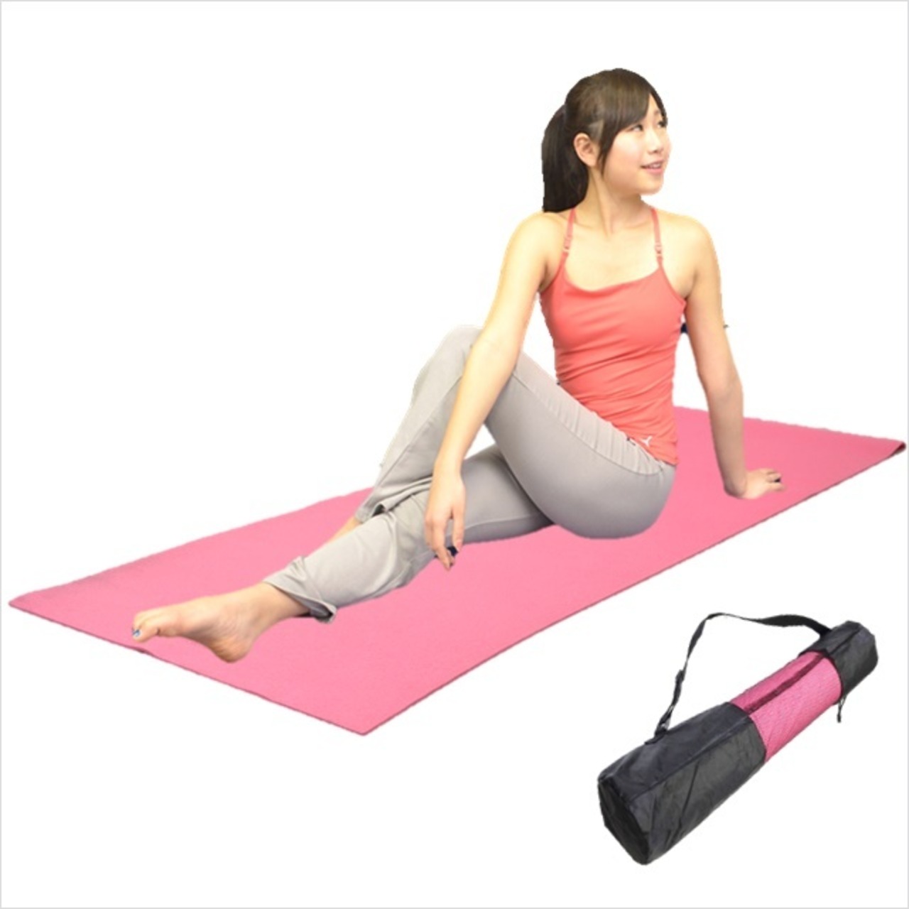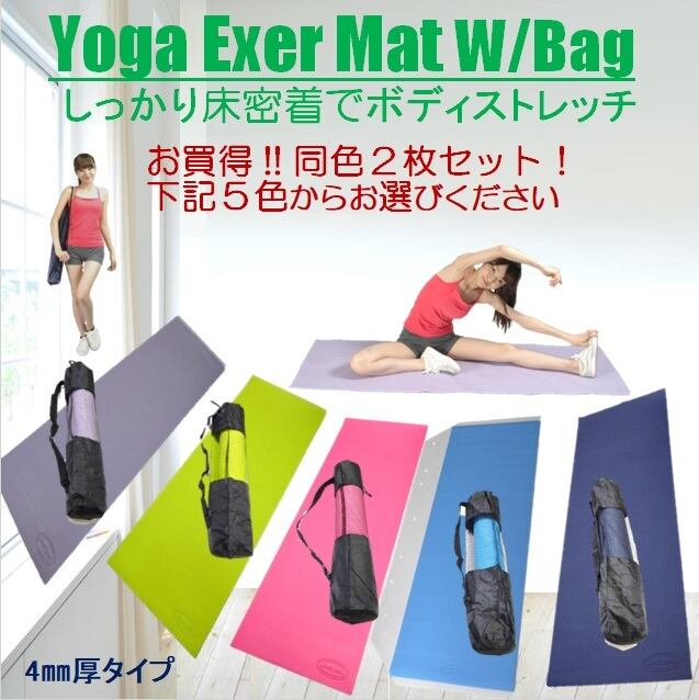 【特割2枚組】キャリングバッグ付ヨガエクサマット同色2枚組 ※床に体にしっかり密着!