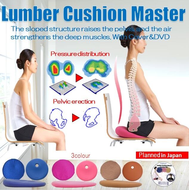 エアーのふわふわ感が、オフィスでもお家でも腰・骨盤を優しく包みます。一人一人のお尻の形状にフィットした厚さにもエアー調節可能で腰や背骨を正しく戻す筋肉をつくる手助けをします。長時間座りっぱなしのデスクワークや腰の悩みや姿勢に悩んでいる方やイスが痛いなどの人におすすめ! しかも、姿勢クリエイター花岡正敬氏監修のエクササイズDVD・運動解説書に専用カバーもついています。