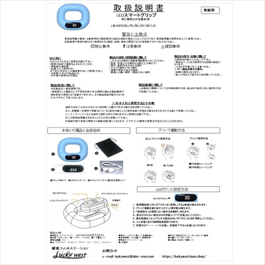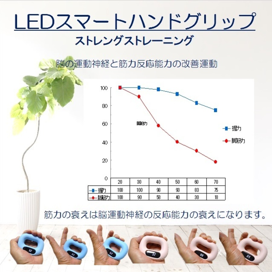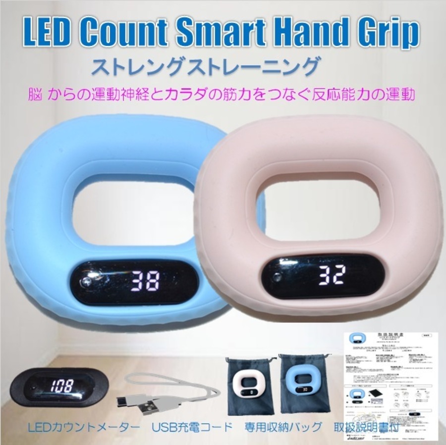 お洒落なパステルカラ―2色でトレーニングでも疲れにくいソフトなシリカゲルを使用した「のLCDカウンター付ハンドグリップ」は生活に大切な握力運動で脳からの運動神経とカラダの筋力をつなぐ反応能力の改善運動(ストレングストレーニング)として楽しみながら鍛えれることができます。料理や庭いじり作業/パソコンキーボード使用/スマートホーン使用/ピアノ・ギターの演奏/ 管楽器演奏の上達/ビンの開栓力維持/ゴルフ・テニス・バトミント・野球・卓球などのスポーツにも握力は大切で、特長は磁石カウント方式による正確な回数計測と快適ソフトグリップです。今では米国TV通販のQVCでの人気商品となっていて専用収納バッグと充電用USBコードが付いています。
