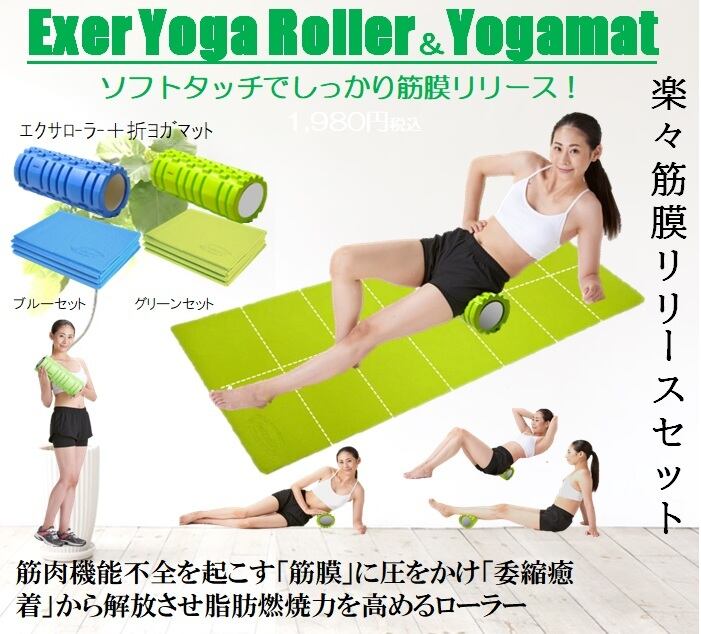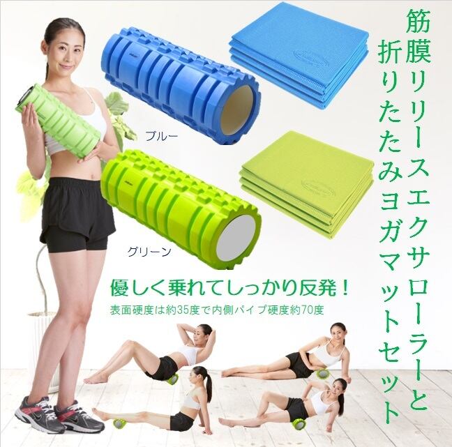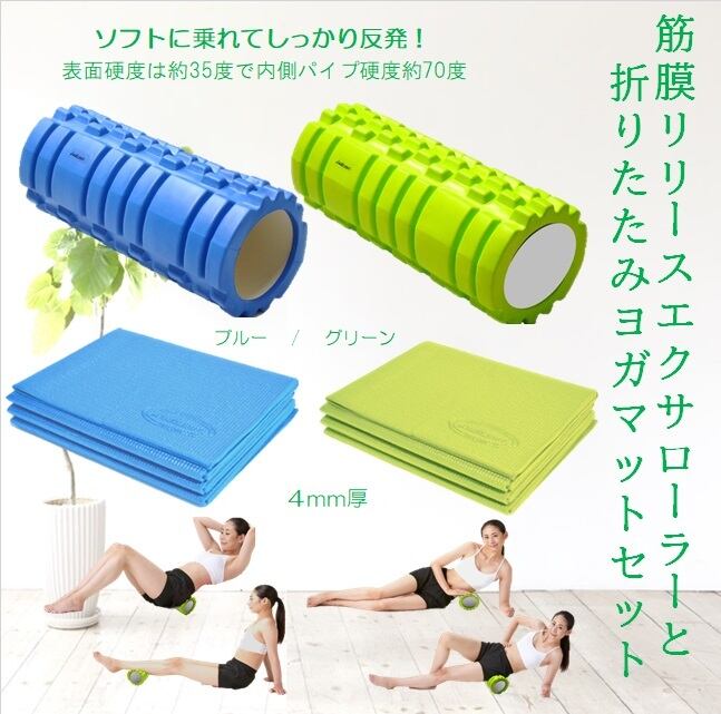 【Mat割】筋膜リリースエクサヨガローラー+14折ヨガマットセット ※2色から選択