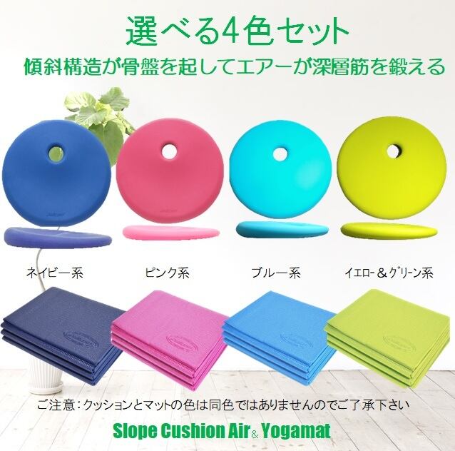 【Mat割】骨盤起立スロープクッションエアー+14折ヨガマットセット ※4色から選択